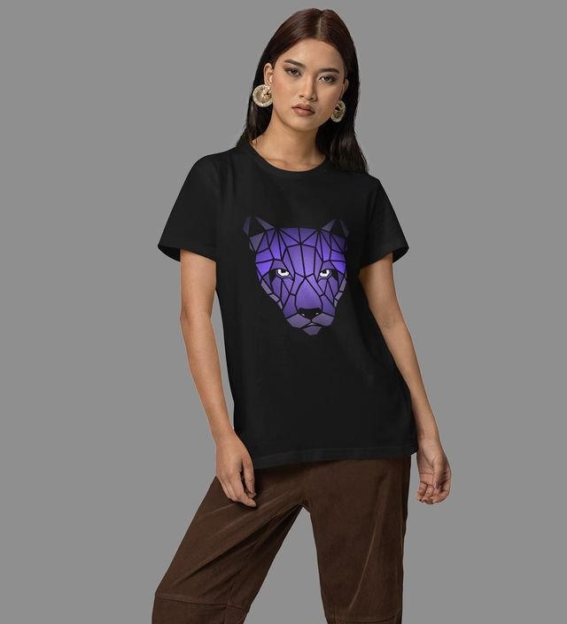 Violet Shadow Beast: Graphic Printed Black T-Shirt