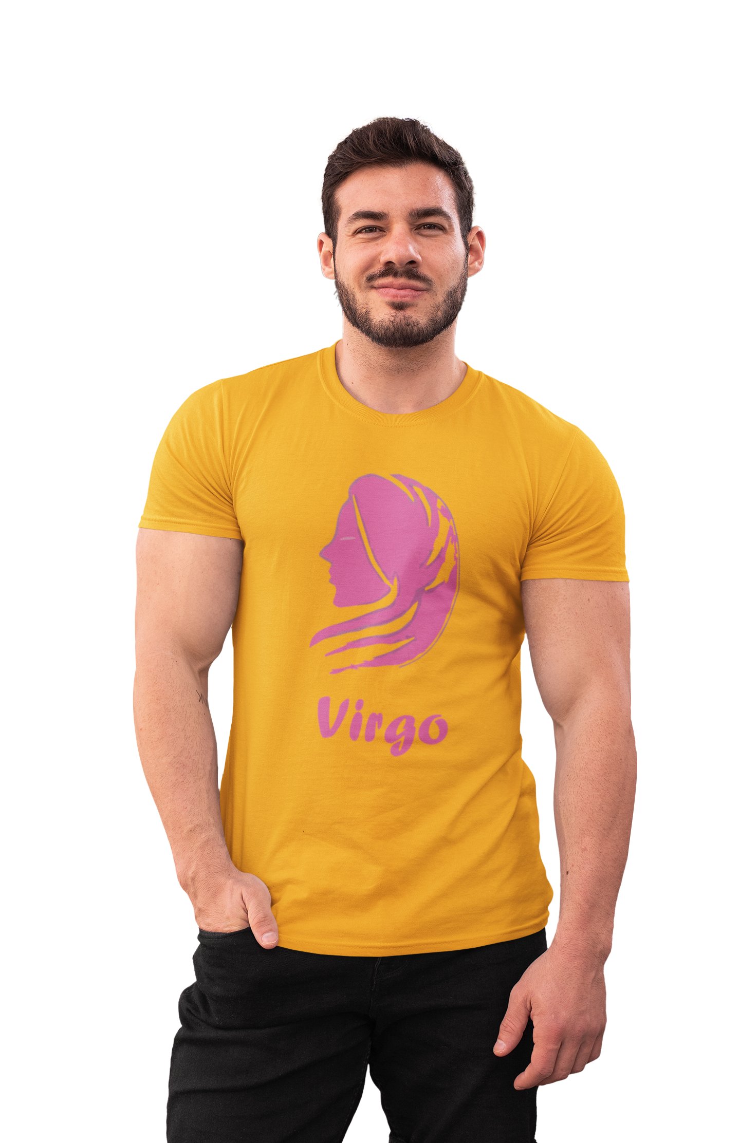 Virgo (BG pink) (Yellow T) - Printed Zodiac Sign Tshirts - Made especially for astrology lovers people