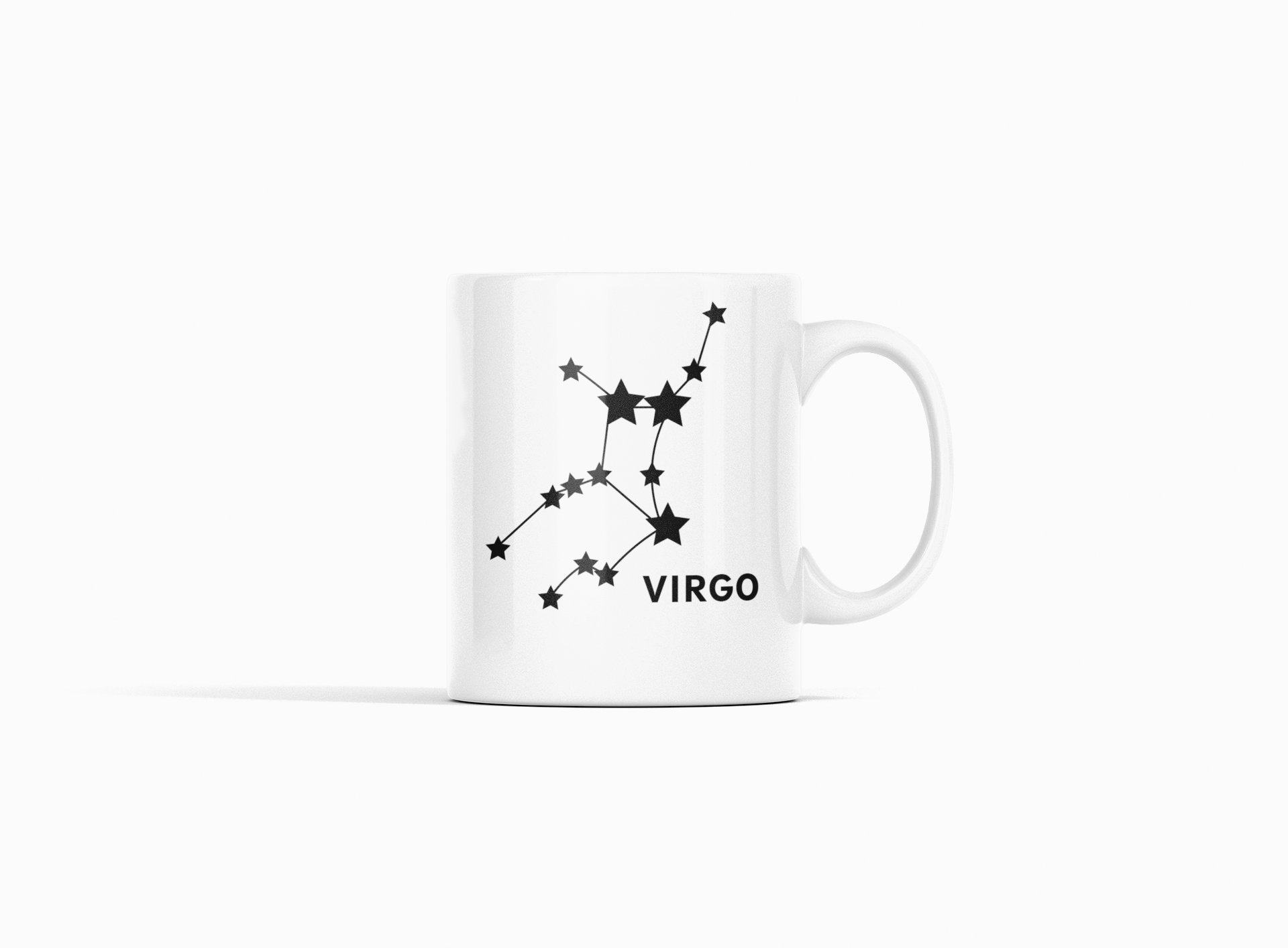 Virgo stars- zodiac themed printed ceramic white coffee and tea mugs/ cups for astrology lovers