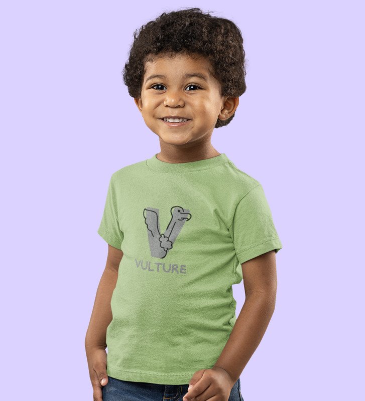 Vulture, Boys Round Neck Printed Blended Cotton Tshirt (Olive)