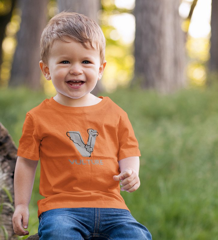 Vulture, Boys Round Neck Printed Blended Cotton Tshirt (orange)