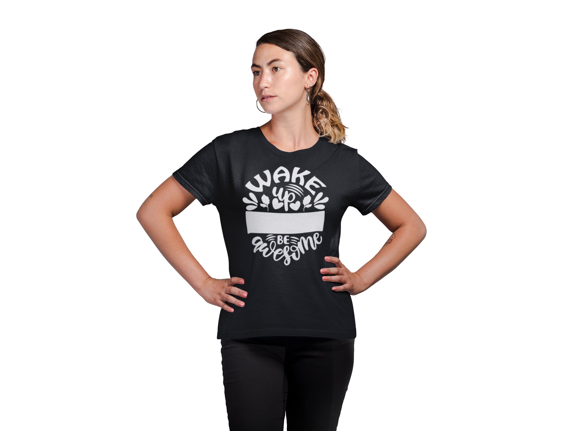 Wake and Be Awsome Girls Black-Printed T-Shirts