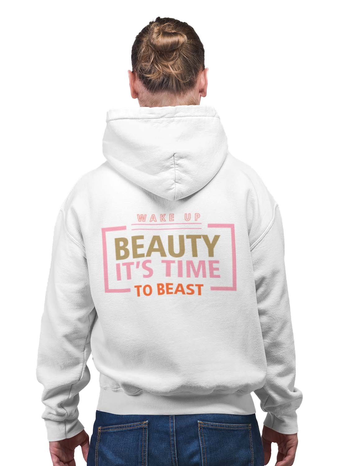 Wake Up, Beauty printed activewear white hoodies for winter casual wear specially for Men