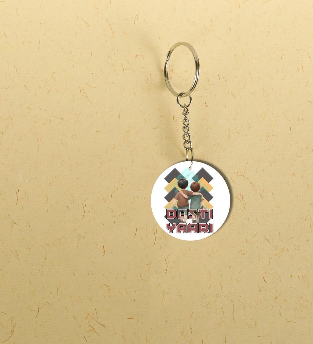 Walking Together Dosti Yaari Artwork: Printed Round Keychain Pack of 2
