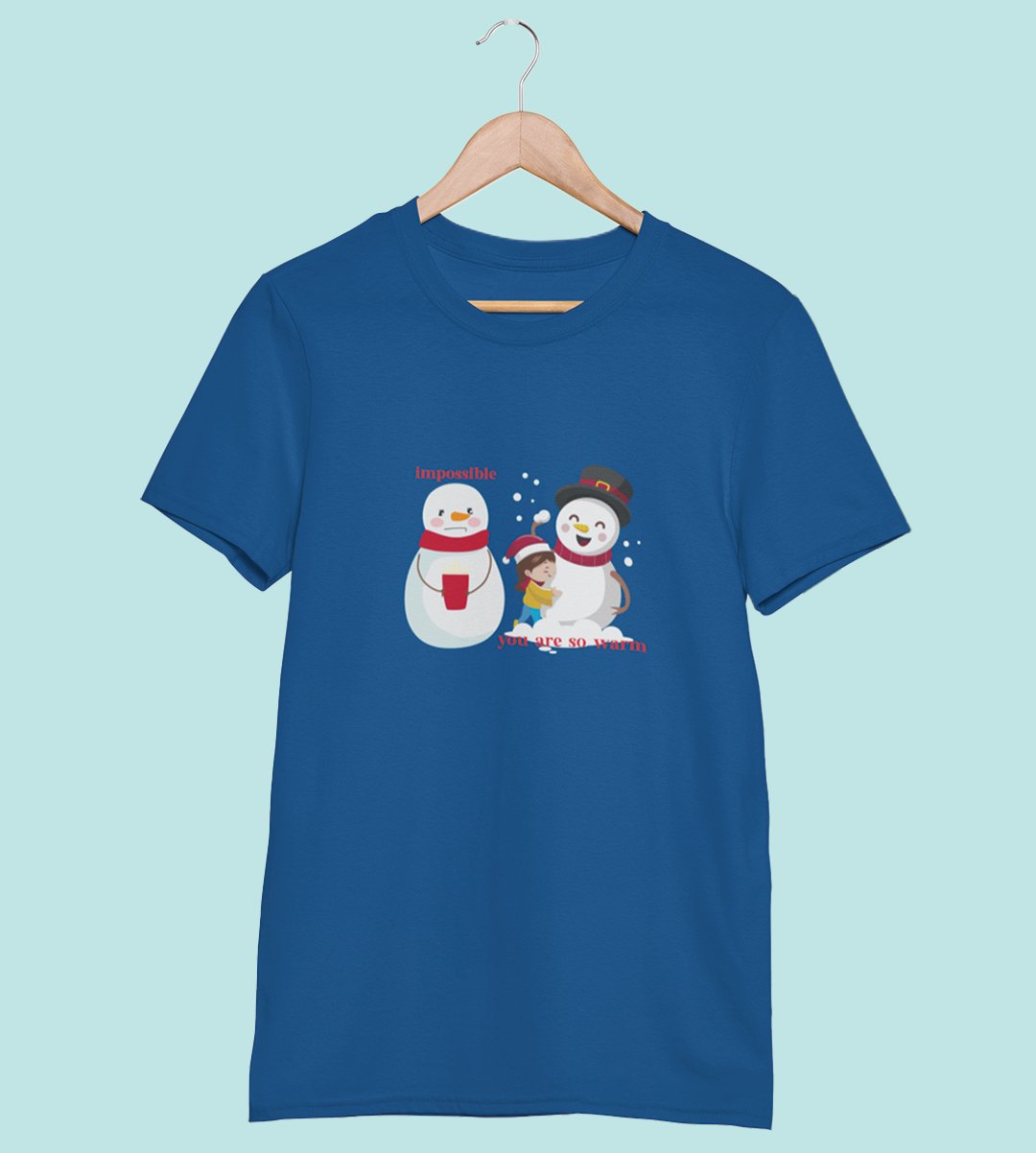 Warm Snowman : Beautifully Printed T-shirt (Blue) Perfect Gift For Christmas Eve