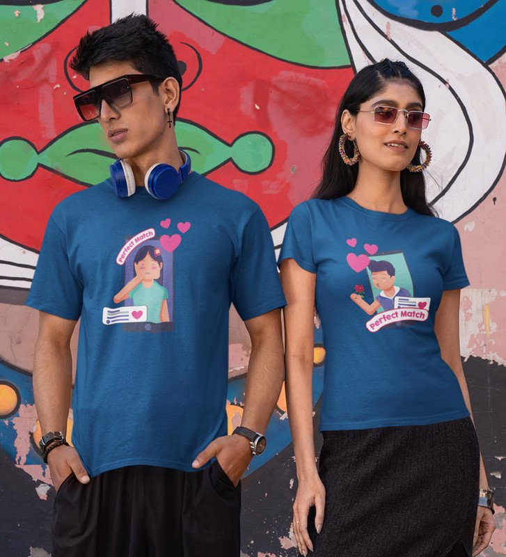 We Are A Perfect Match Couple Print (blue) T-shirts
