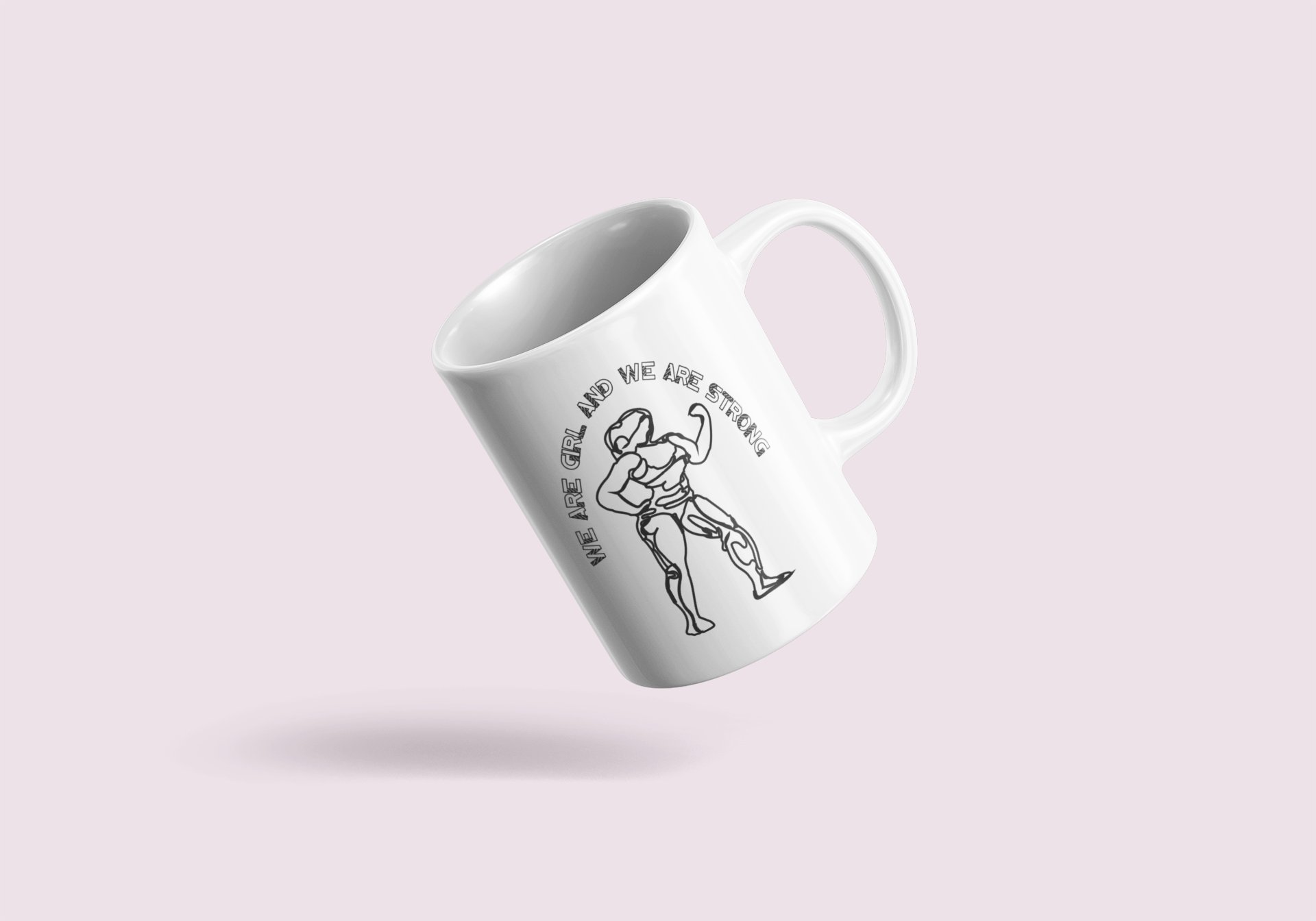 We are Girls - line art themed printed ceramic white coffee and tea mugs/ cups