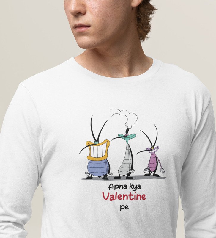 We Don't Have Valentine: Sublimation Printed (white) Full Sleeve T-Shirt For Singles