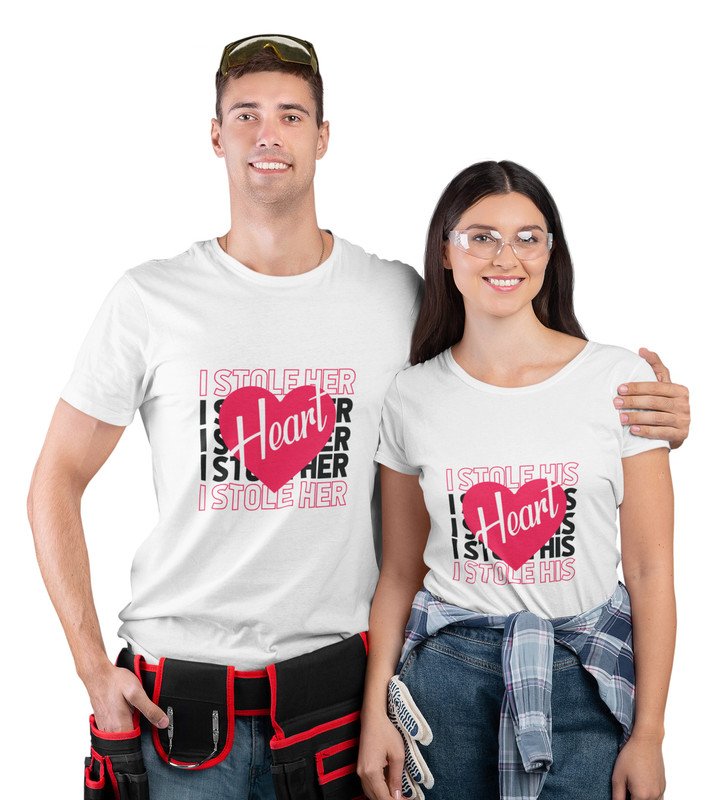 We Stole Each Other's Heart Printed Couple (White) T-shirts