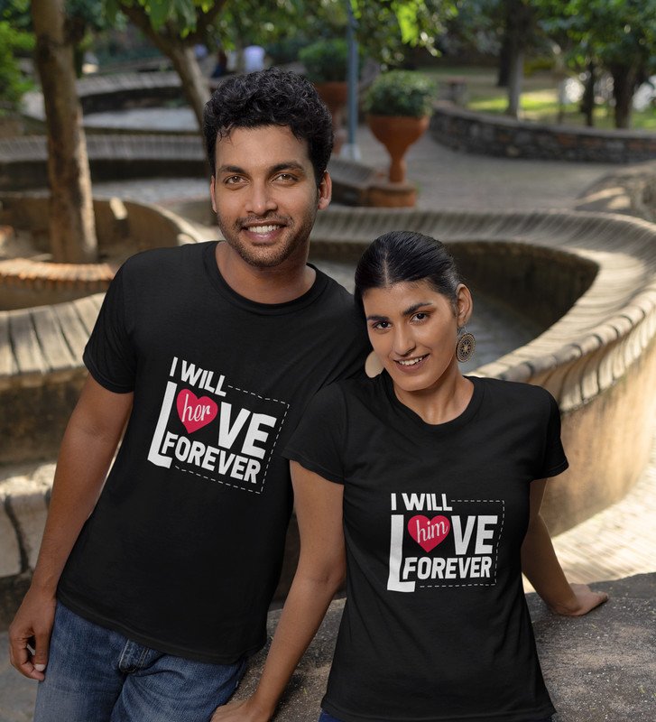 We Will Love Each Other Forever Printed Couple (Black) T-shirts