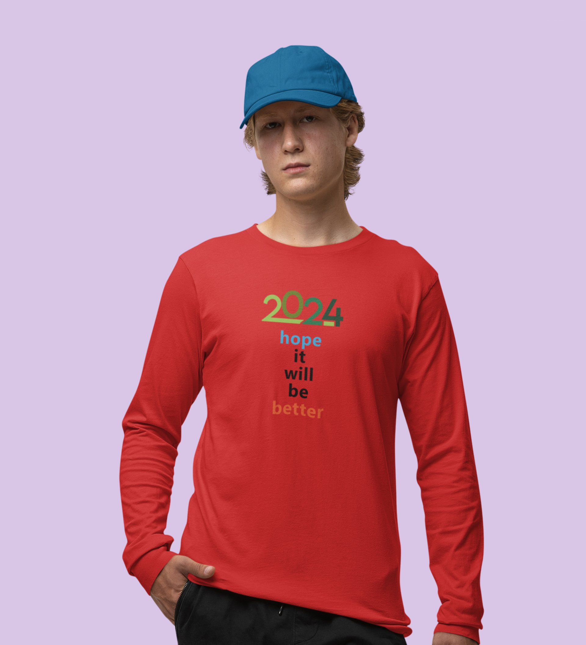 Welcome 2024: New Year DesignedFull Sleeve T-shirt Red Best Gift For Secret Santa