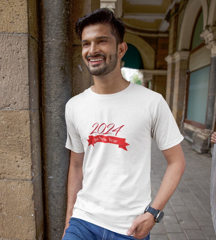 Welcome 2024White Graphics Printed T-shirt For Mens On New Year Theme Best Gift For New Year