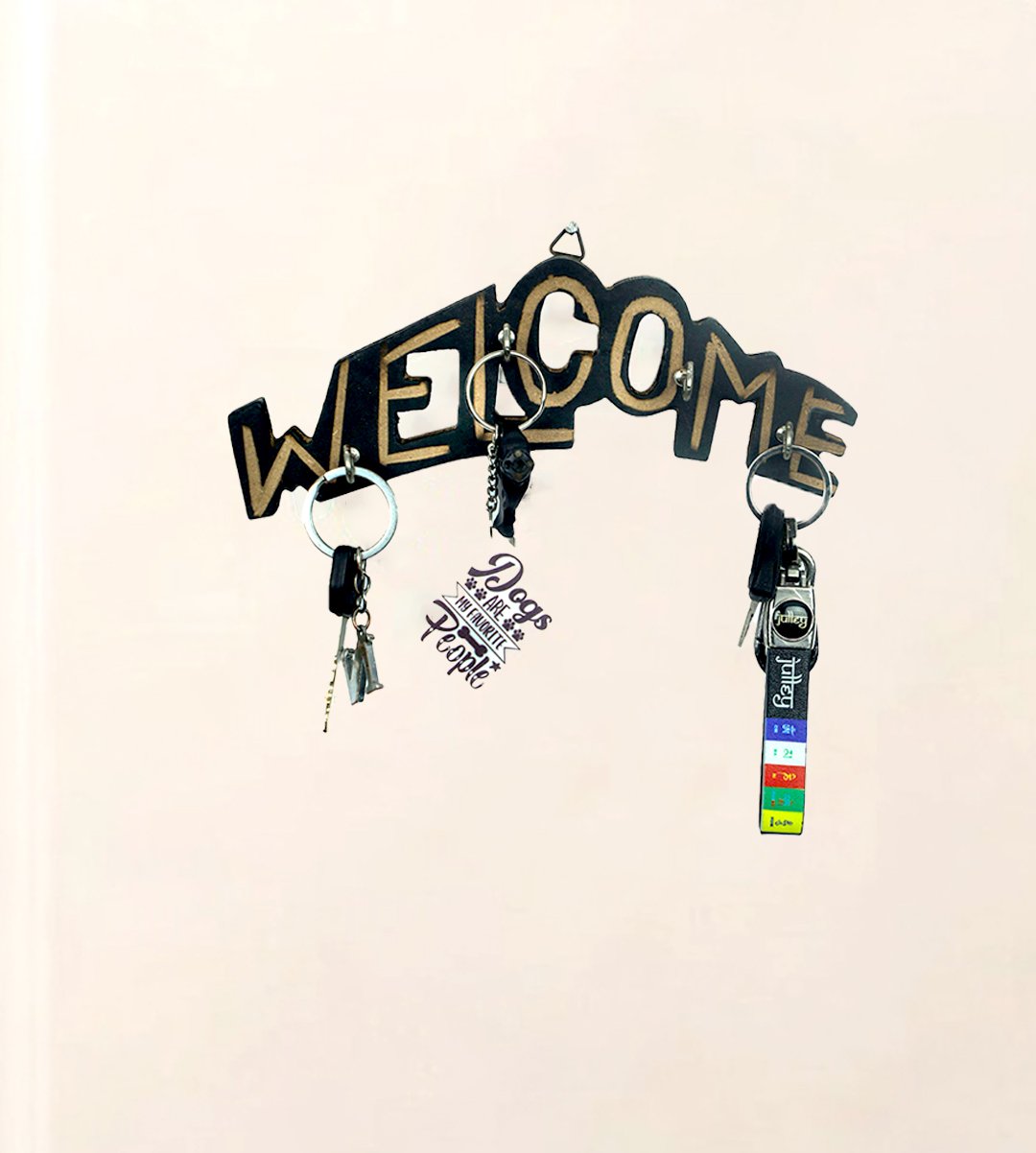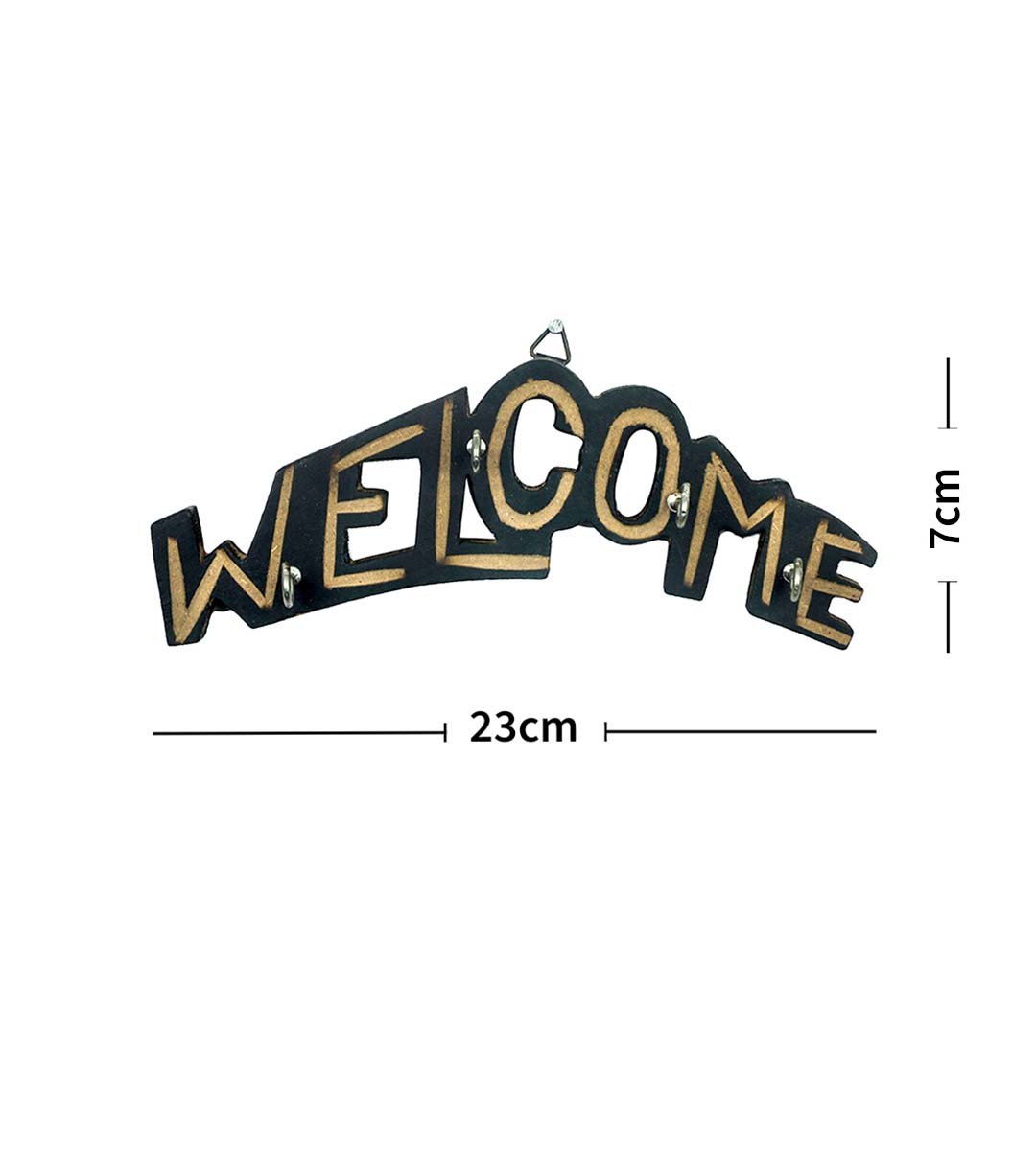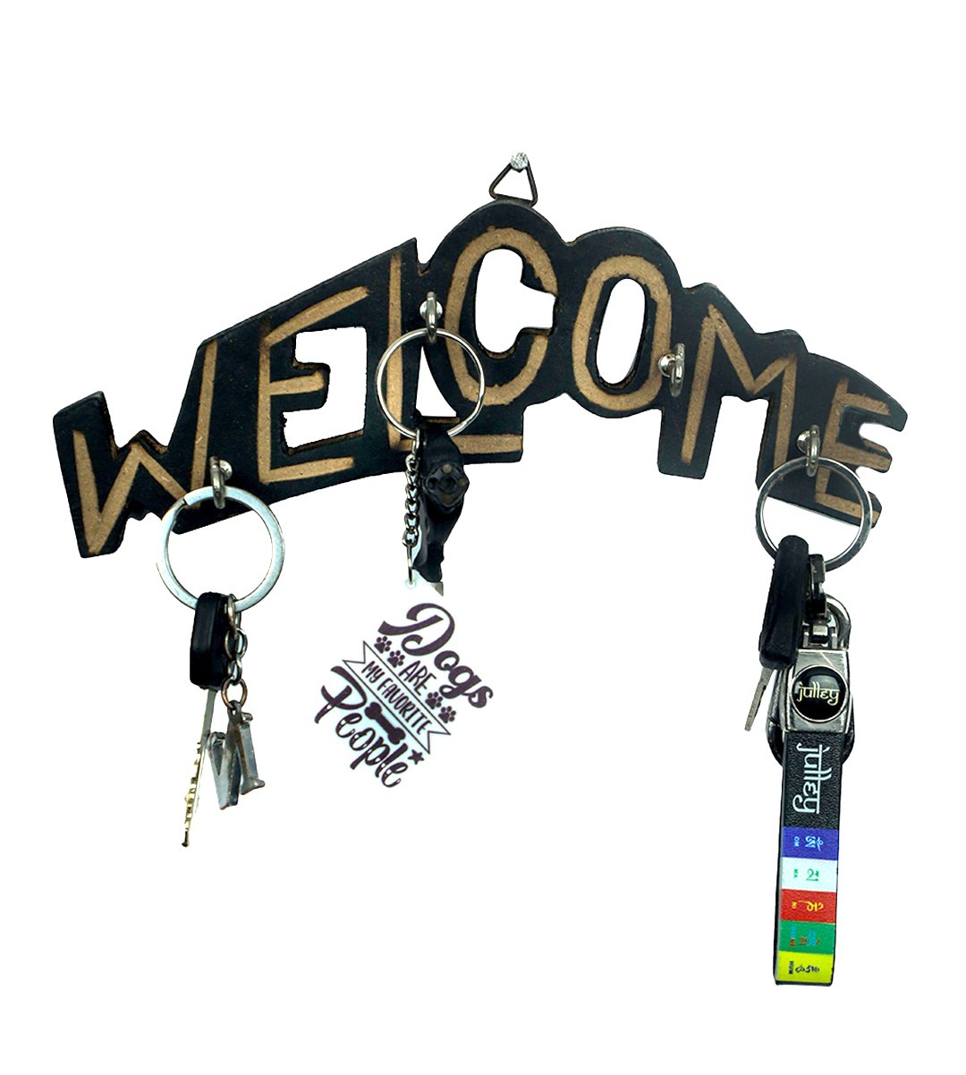 Welcome text wooden hanging keystand / key rack for walls of your home and offices (black)