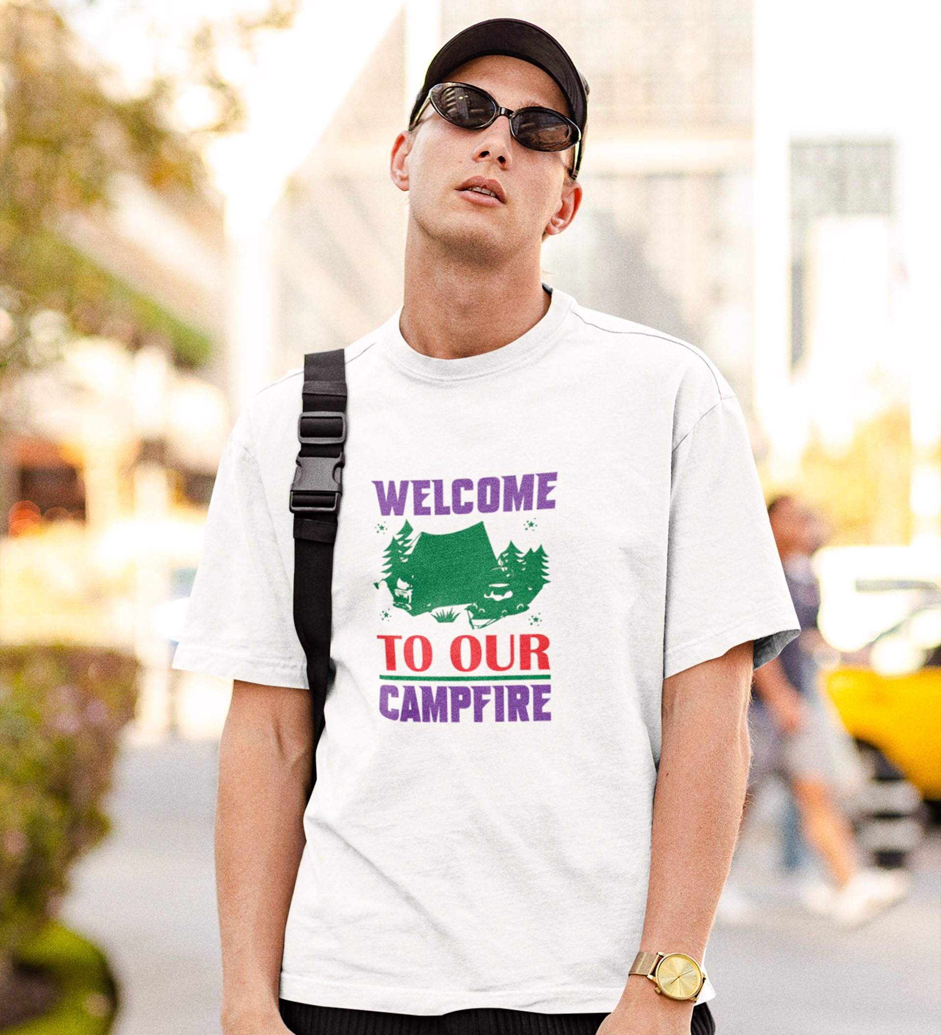 JD.TRENDS Welcome To Campfire White Round Neck Cotton Half Sleeved Men's T-Shirt with Printed Graphics