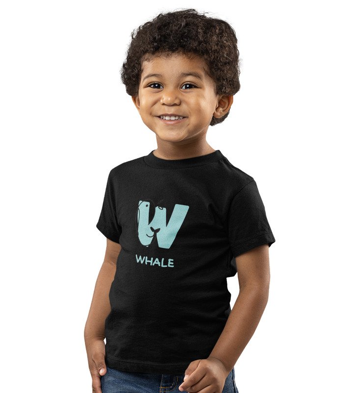 Whale, Boys Printed Crew Neck Tshirt (Black) Printed Cotton Tshirt for Boys