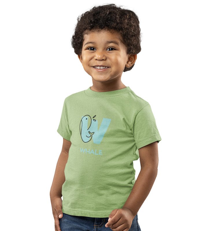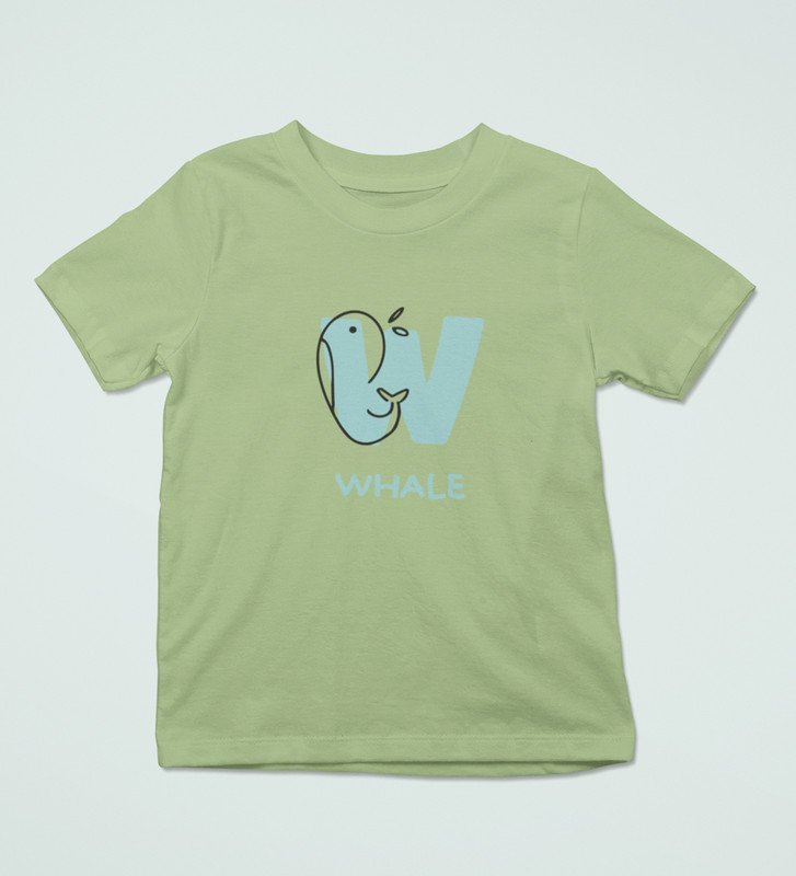 Whale, Boys Printed Crew Neck Tshirt (Olive) Printed Cotton Tshirt for Boys