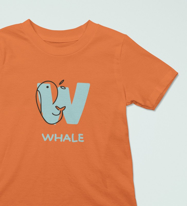 Whale, Boys Printed Crew Neck Tshirt (Orange) Printed Cotton Tshirt for Boys