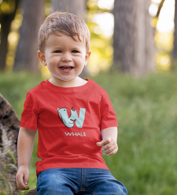 Whale, Boys Printed Crew Neck tshirt (red) Printed Cotton tshirt for Boys