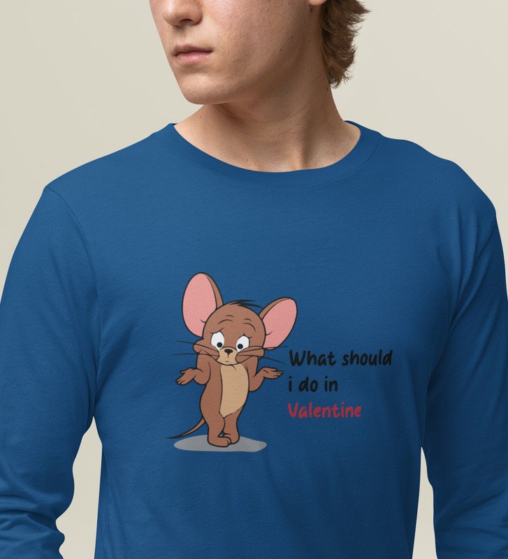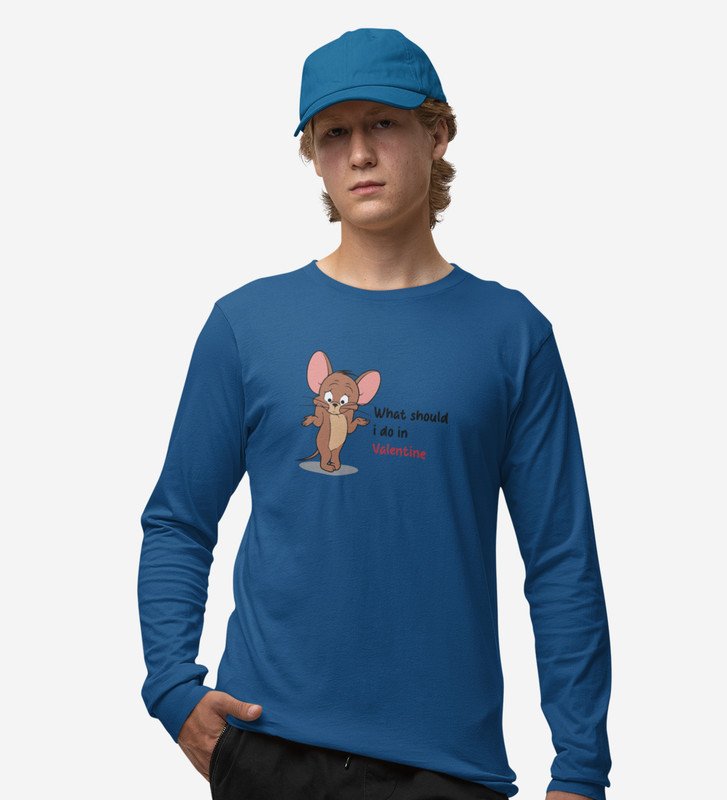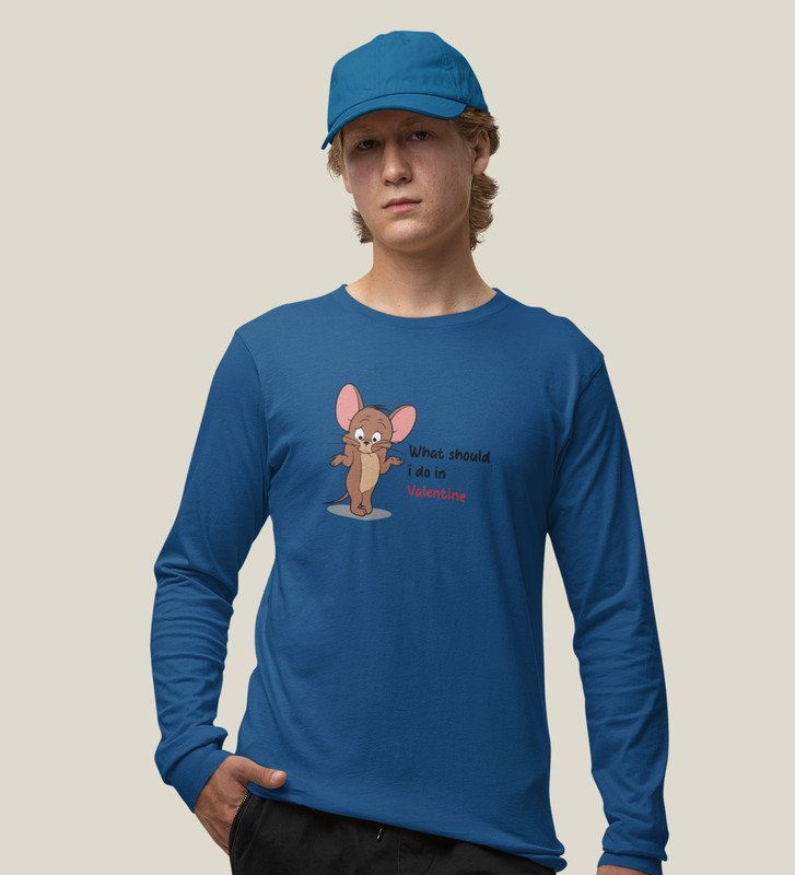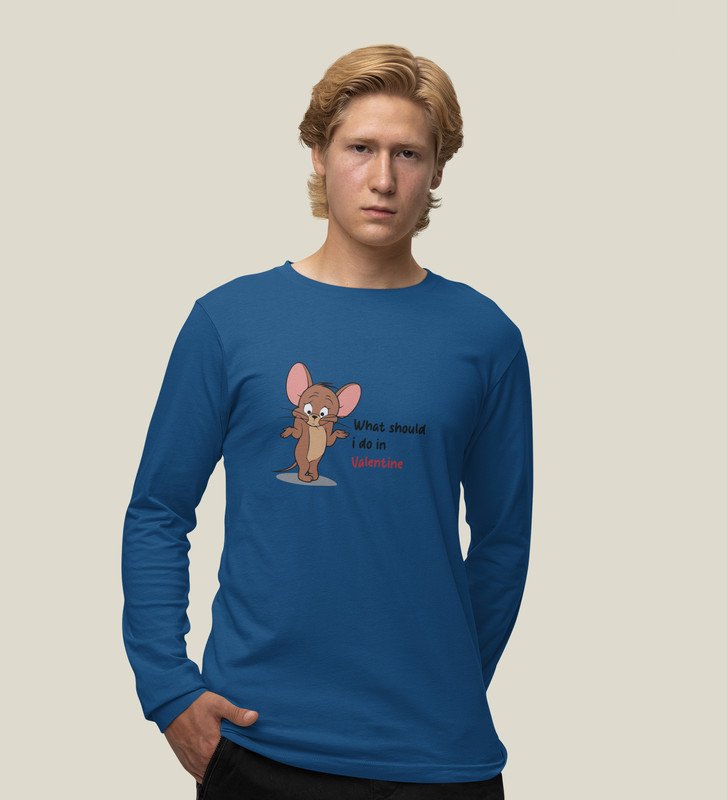 What Should I Do In Valentine: Printed (blue) Full Sleeve T-Shirt For Singles