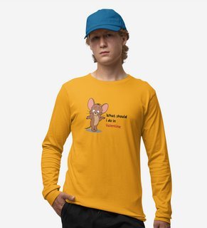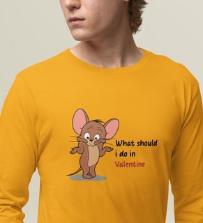 What Should I Do In Valentine: Printed (yellow) Full Sleeve T-Shirt For Singles