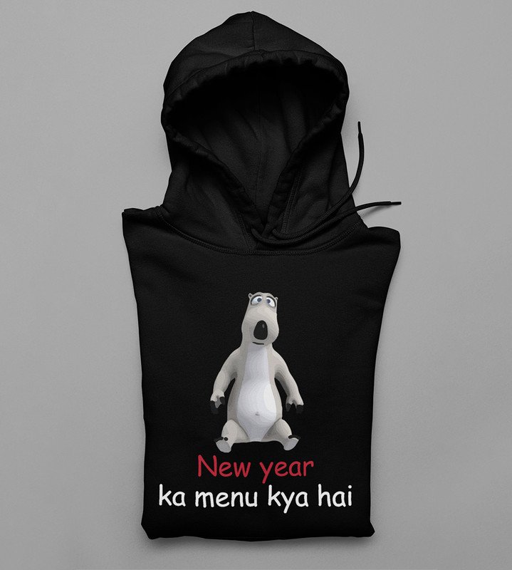 What's There For New Year, Black New Year Printed Hoodies For Mens