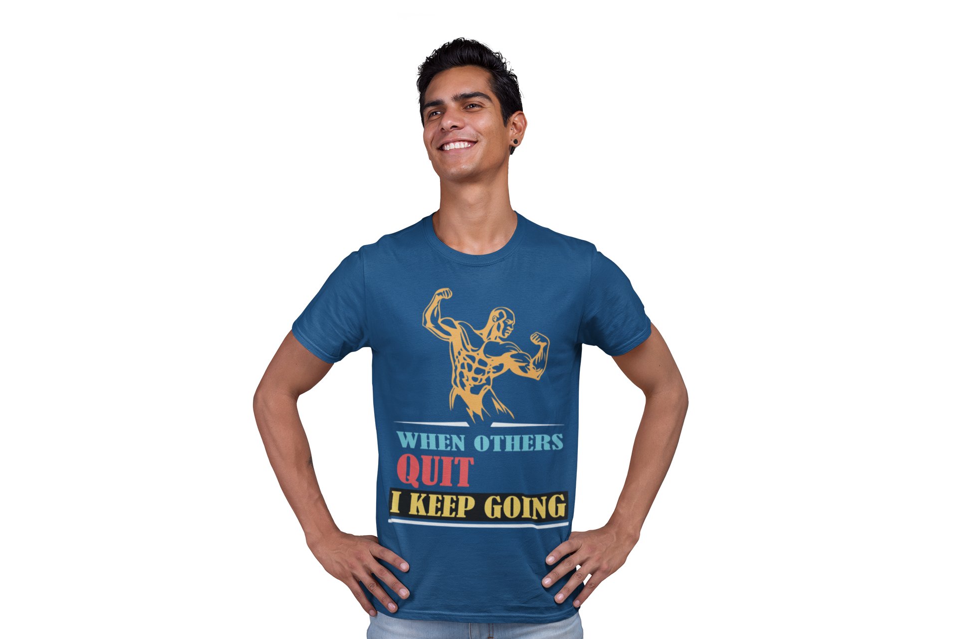When Other's Quit, I Keep Doing, Round Neck Gym Tshirt (Blue Tshirt) - Clothes for Gym Lovers - Suitable for Gym Going Person - Foremost Gifting Material for Your Friends and Close Ones
