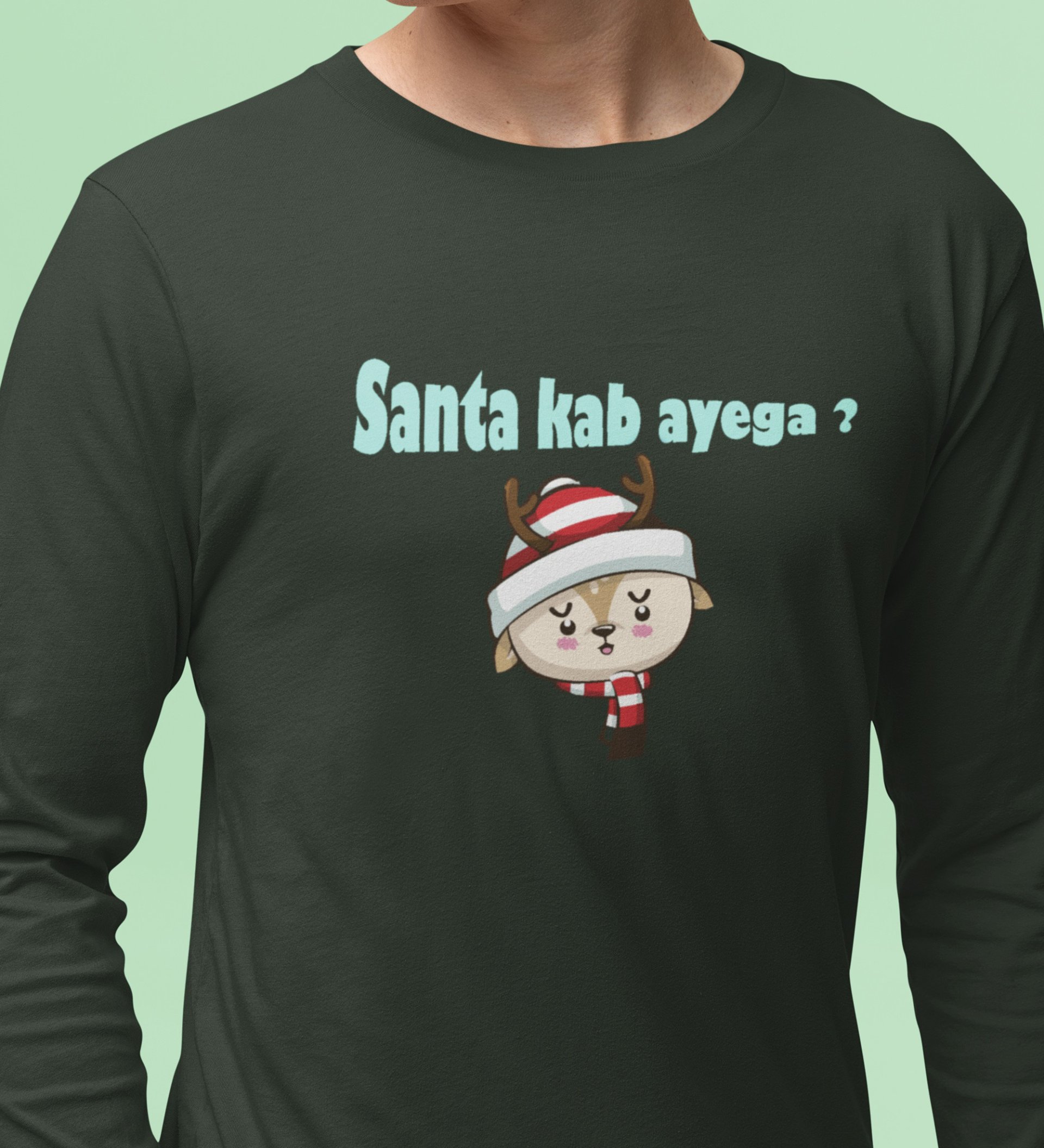 When Will The Santa Come: Green Christmas Full Sleeve T-shirt BestFull Sleeve T-shirt Gifting Kids Friends