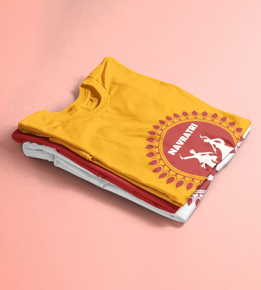 Navratri is a very auspicious festival for hindus. It takes place at the beginning of October and sometimes September. Enjoy the 9 days of festivities with full zeal and make yourself submerged in the love of Maa Durga. Navratri is also known as Durga Puja. And with this Tees, you can shine like a star during this festive season with our navratri themed cotton half sleeved Tshirts. You can pair our t-shirts with trousers and denim of your choice and make it a weekday smart casual or weekend wear. This is durable. This tshirt is smooth and soft which makes you comfortable to wear during all seasons. The printing in it is durable and odourless. It has five sizes, S,M,L,XL,XXL. The Tshirt colour is intact even after repeated washes. It can be kept in your wardrobe and hangers. Please avoid washing mashine to clean this Tee, it may affect the print. Hand wash only. We have brought you many navratri related designs printed on our different colour Tshirts to choose from. Grab it now.