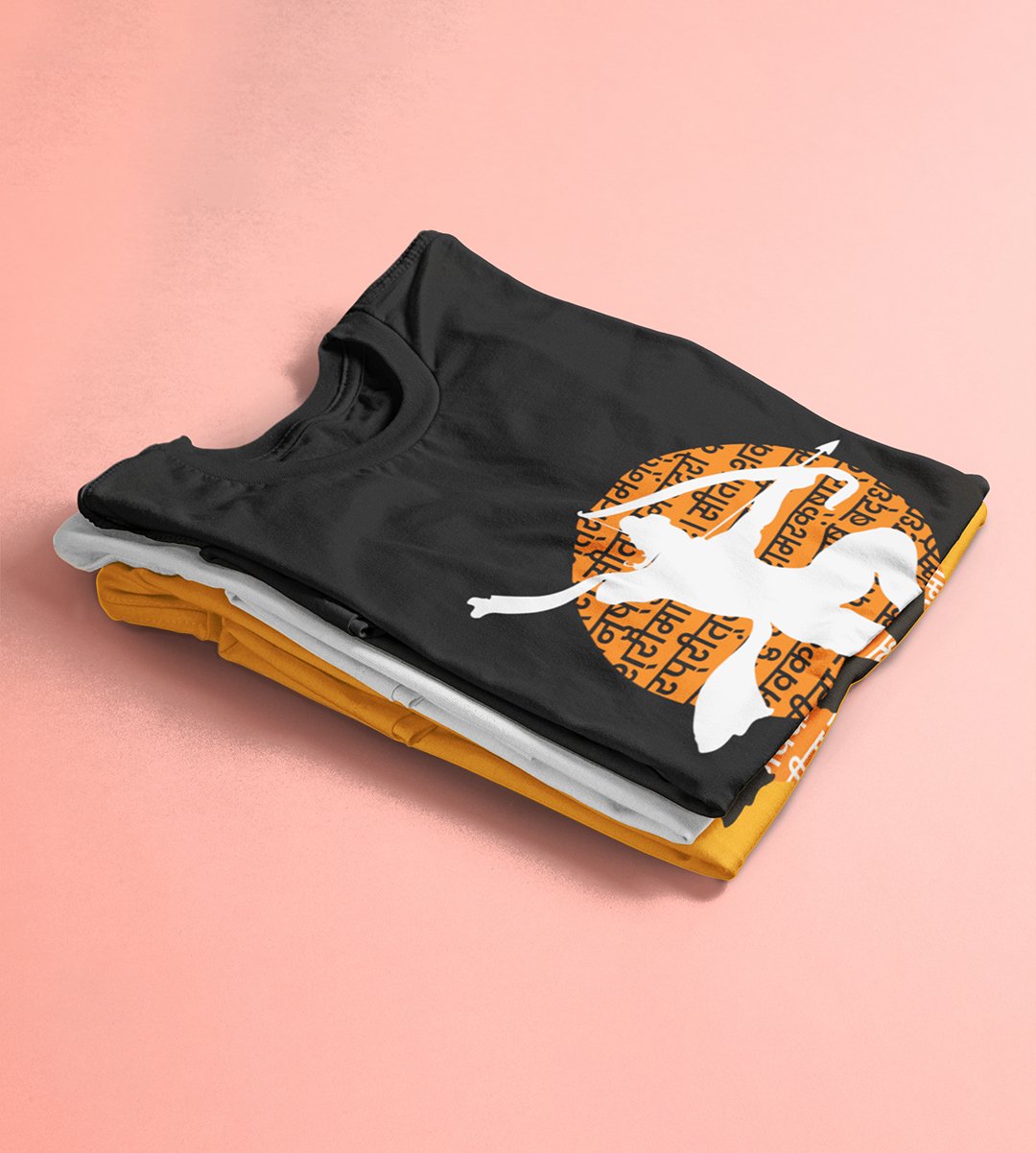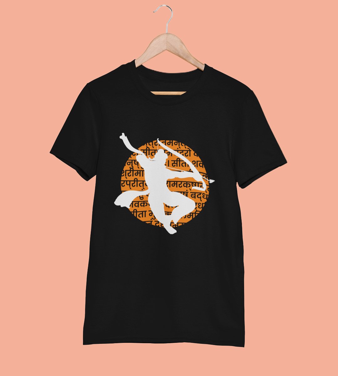 White shadowed lord Shree Ram printed unisex adults round neck cotton half-sleeve black tshirt specially for Navratri festival/ Durga puja