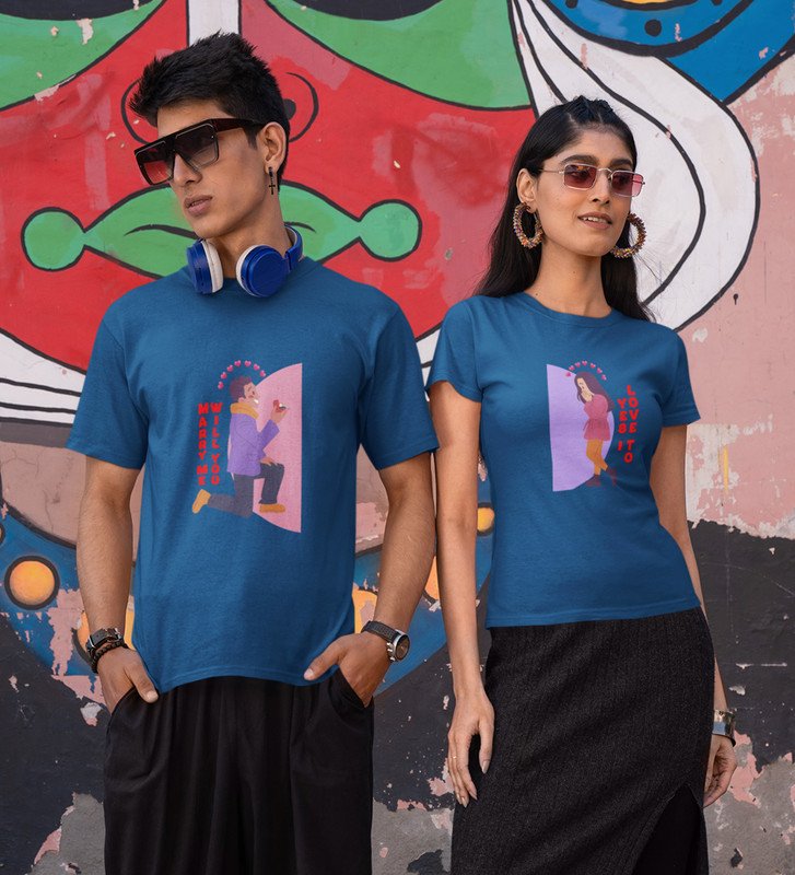 Will You Marry Me? Printed (blue) T-shirts For Couples