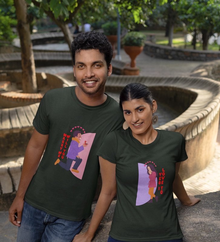 Will You Marry Me? Printed (green) T-shirts For Couples