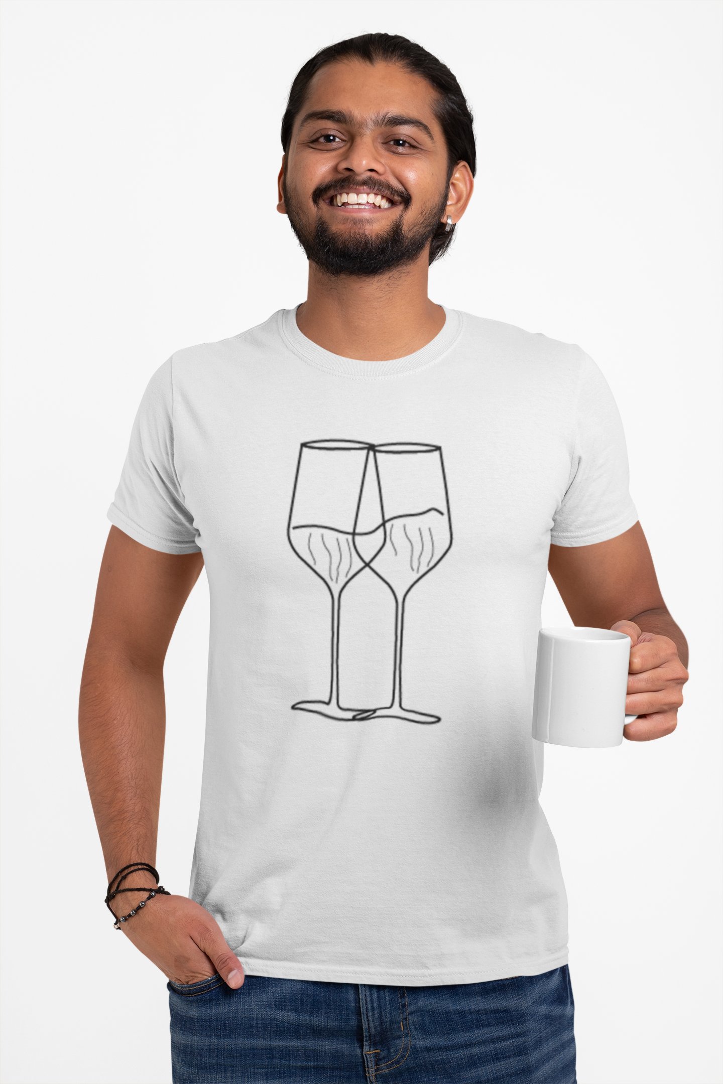 Wine Glasses - Line Art for Male - Half Sleeves T-shirt