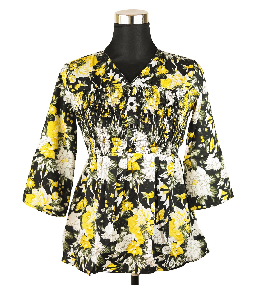 Women's Floral V-Neck Top in Black and Yellow - Versatile and Stylish Fashion Choice