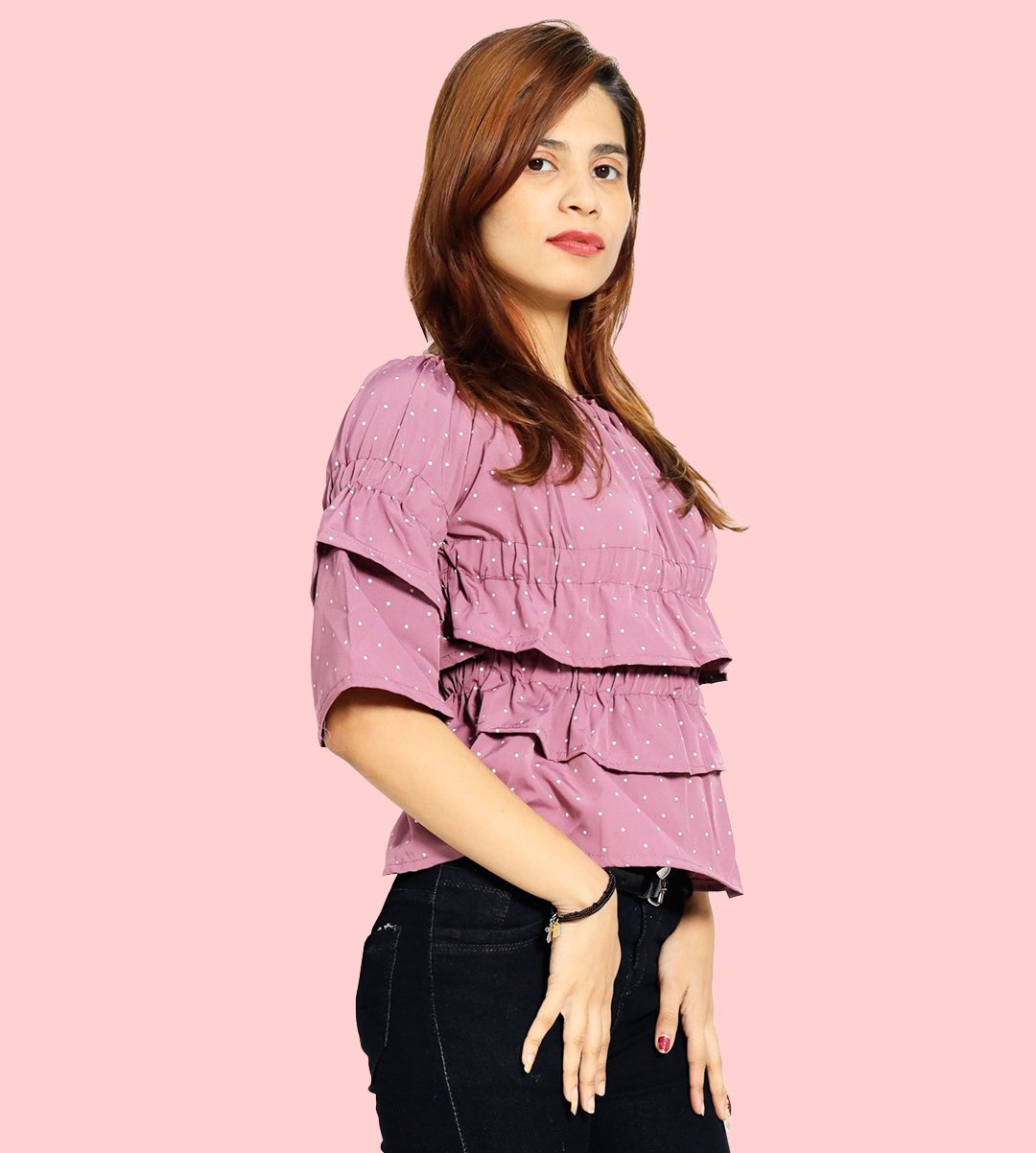 White potka dotsprints floral womens printed top (purple top) - Made up of Rayon for your plesant and cozy