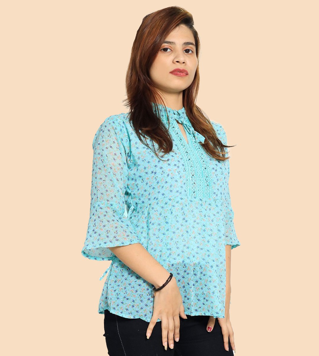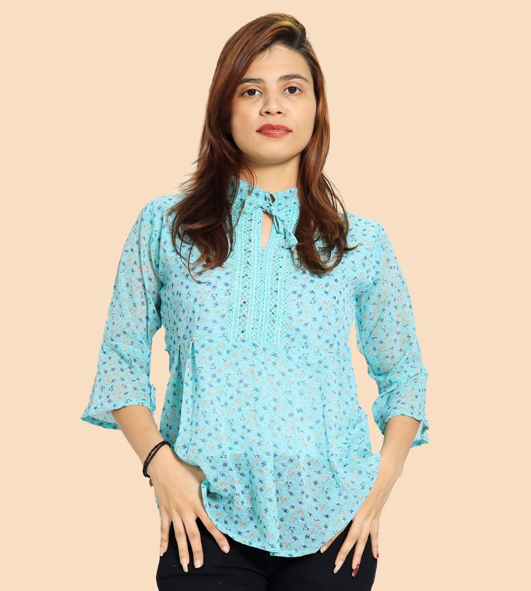 Women loves to wear top of any age groups. The fashion is not only limited upto young girls / teenagers but some married women also love to wear it. The recognization of top is very much popular in 21st century. It is used by the modernized ladies. Easy to wear. It looks good with jeans or jeggings. We have brought you a full collection of floral designs printed top to choose from. This is made up of Rayon and designed for your plesant and cozy.