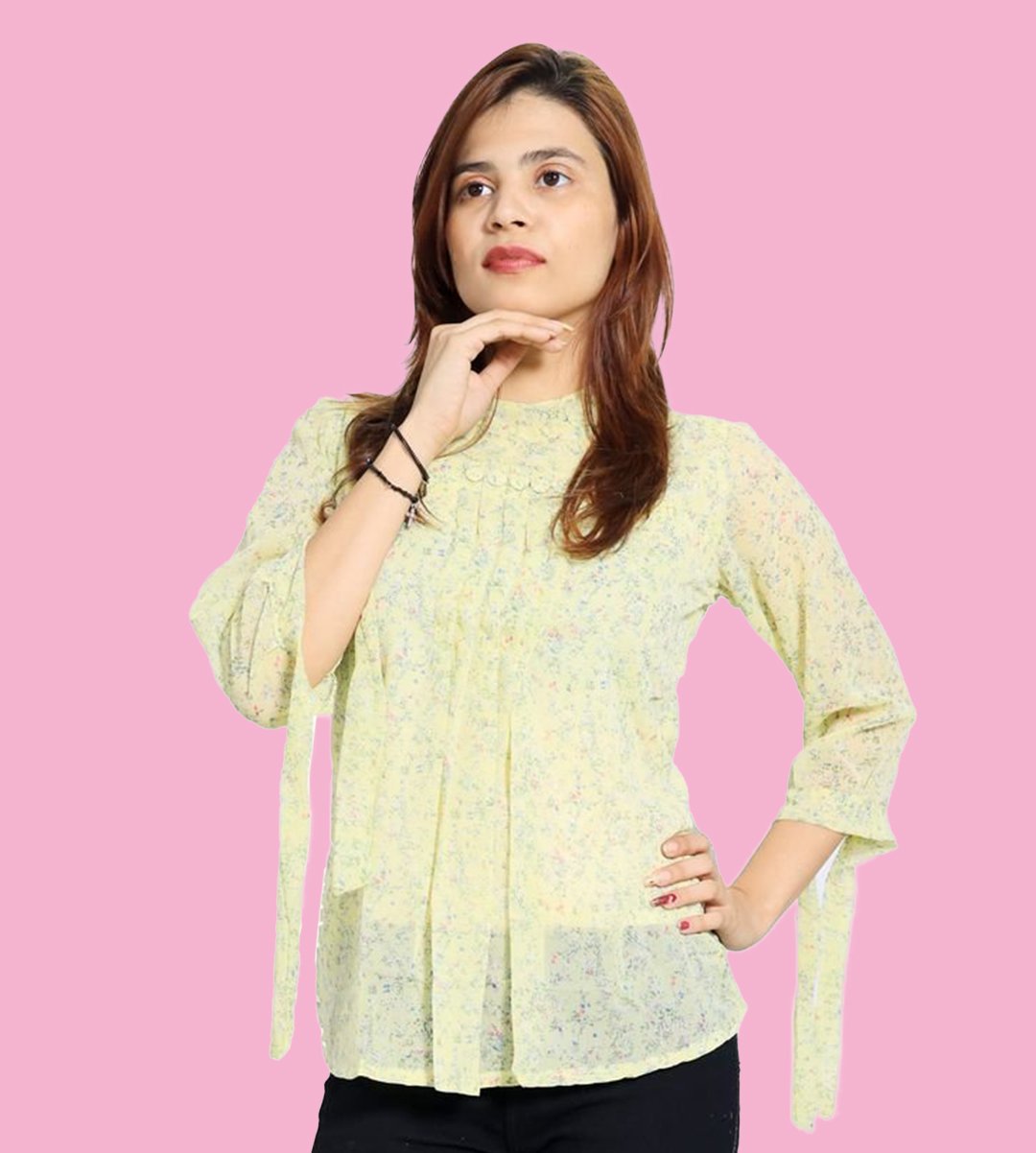 Women loves to wear top of any age groups. The fashion is not only limited upto young girls / teenagers but some married women also love to wear it. The recognization of top is very much popular in 21st century. It is used by the modernized ladies. Easy to wear. It looks good with jeans or jeggings. We have brought you a full collection of floral designs printed top to choose from. This is made up of Rayon and designed for your plesant and cozy.