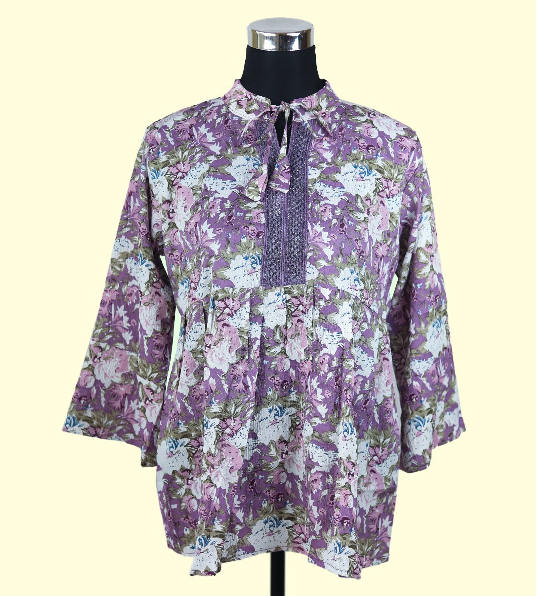 Elevate your wardrobe with our Women's Round Neck Top featuring a Lavender Floral Print, an elegant and refreshing addition to your style. This top showcases a classic round neck design and offers a regular fit, making it suitable for various occasions. Crafted from soft Rayon fabric, this top ensures both style and breathability. The captivating Lavender Floral Print adds a touch of sophistication and a refreshing touch to your look.