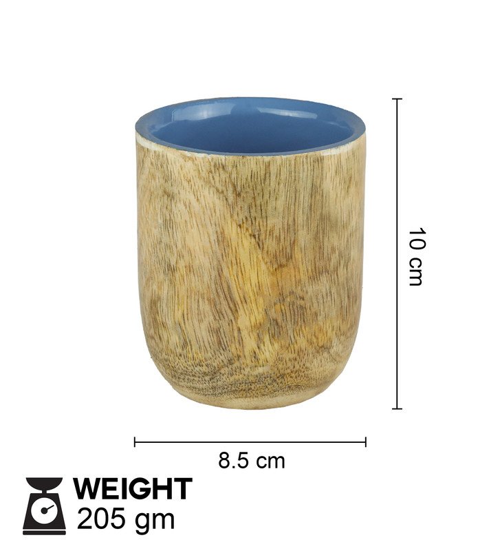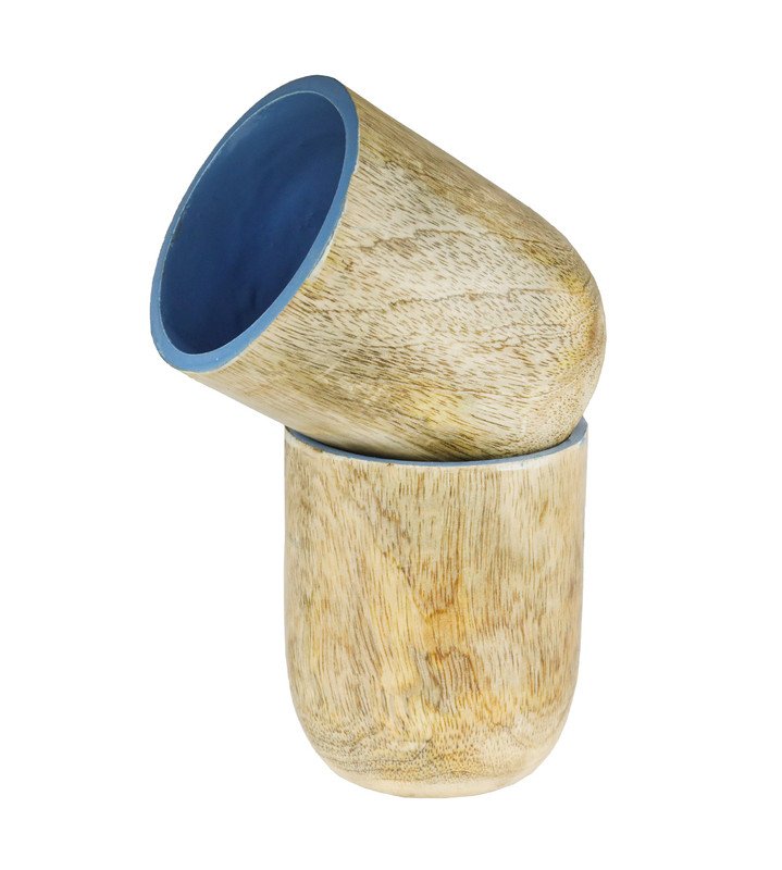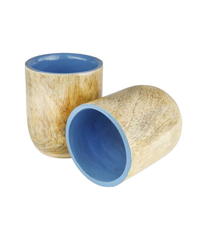 Wooden Glass Set Of 2, Most Unique Glasses For Kitchen Use. Blue Colour And Wooden Coating