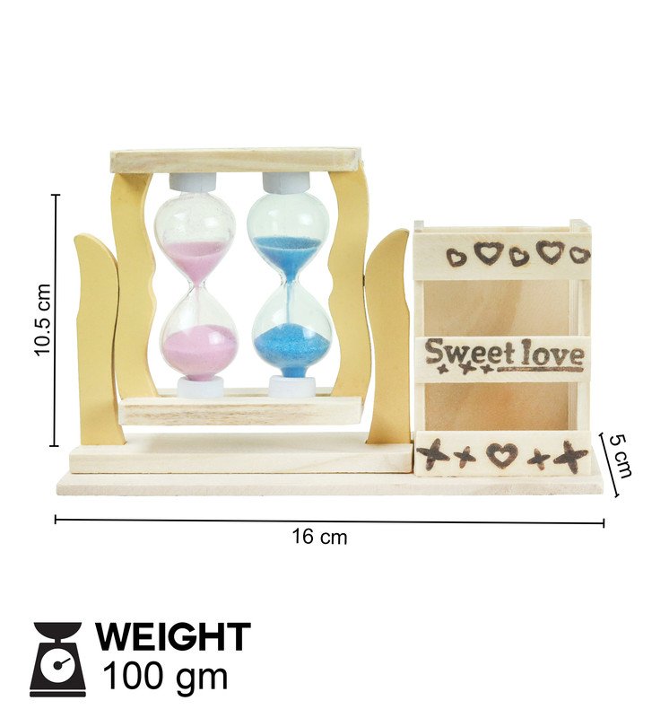 Wooden Twin Sand Hour Glass Timer Dual Pen Pencil Stand, Multi purpose Holder