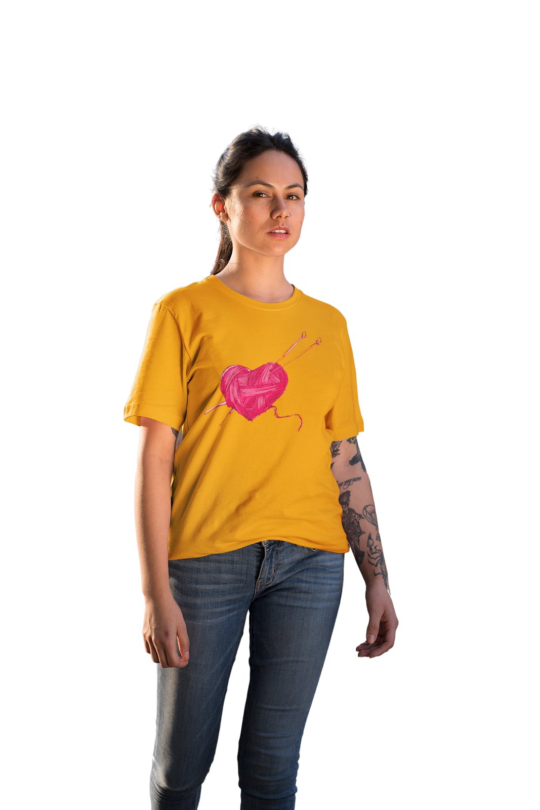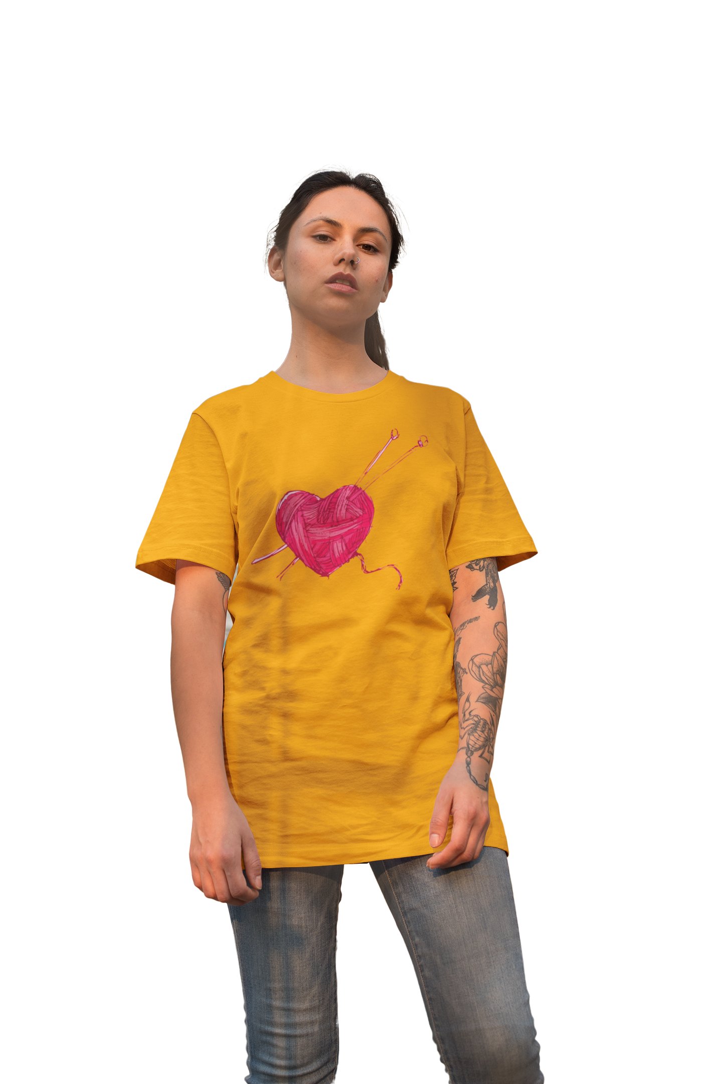 Woolen Heart Printed Yellow T-Shirts