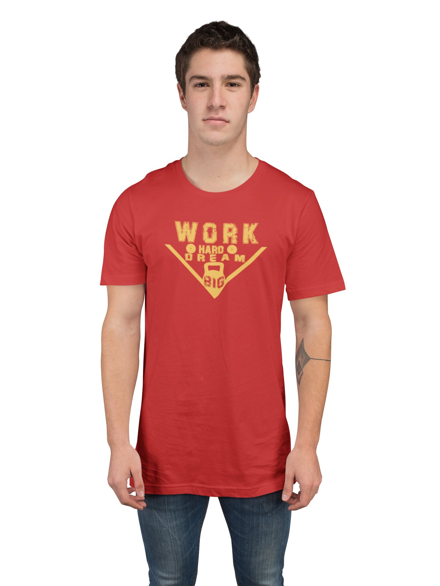 Work Hard, Dream Big, (BG Golden), Round Neck Gym Tshirt (Red Tshirt) - Clothes for Gym Lovers - Suitable for Gym Going Person - Foremost Gifting Material for Your Friends and Close Ones