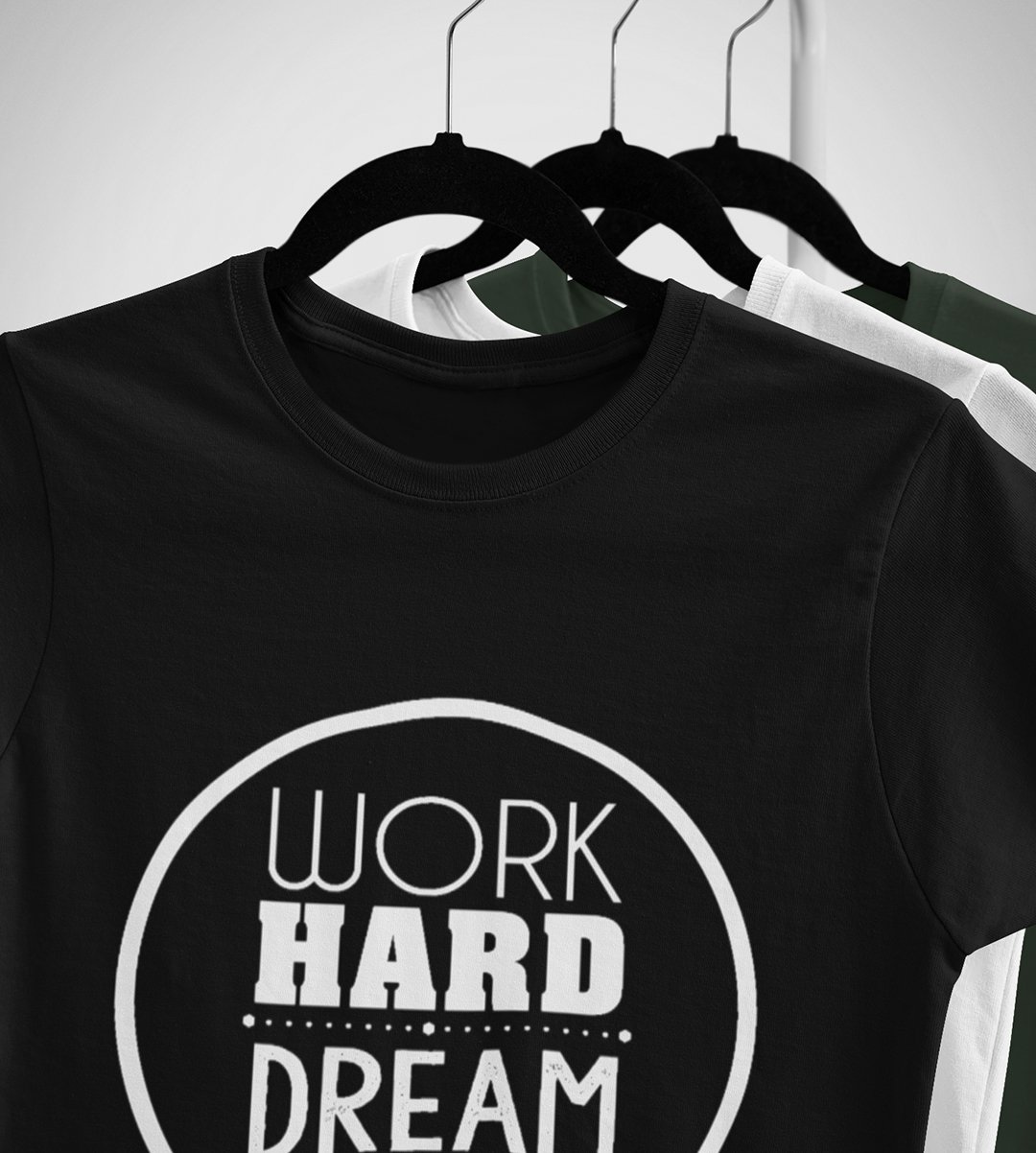 Work hard, dream big (BG white) -round crew neck cotton tshirts for men