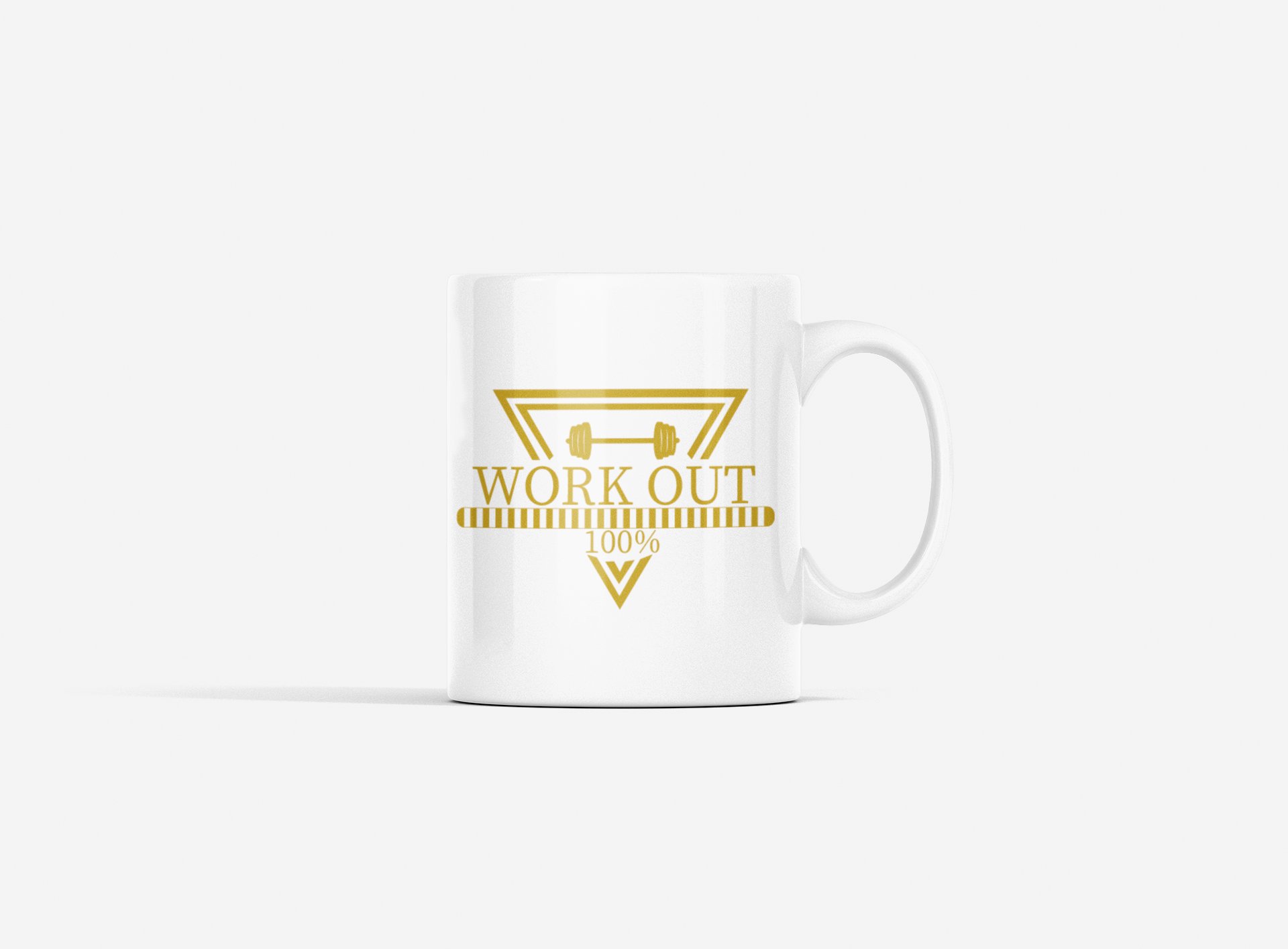 Workout 100%, (BG Golden) - gym themed printed ceramic white coffee and tea mugs/ cups for gym lovers