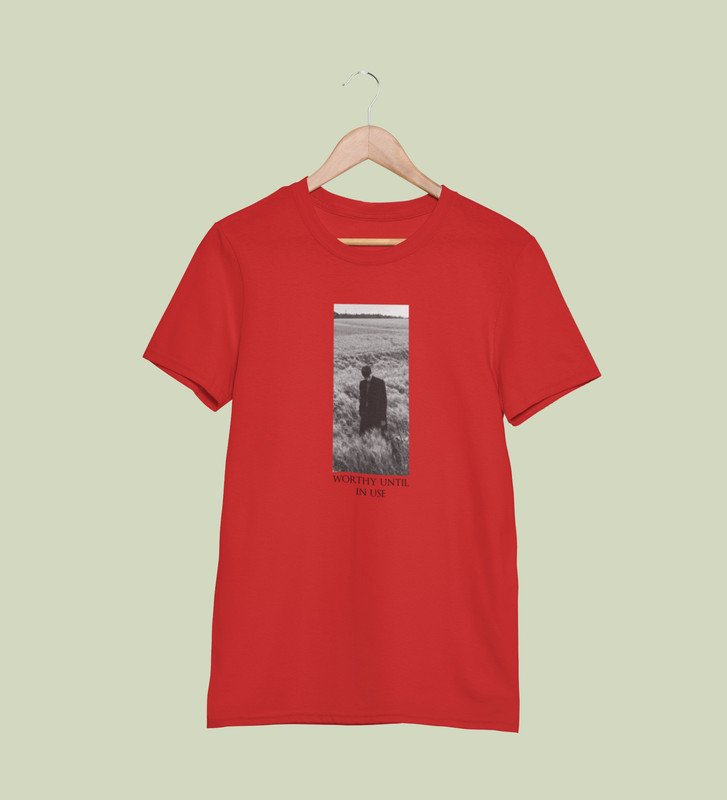 Worthless Life, Cityscape Elegance: Red Men's Oversized Tee with Captivating Front Graphic