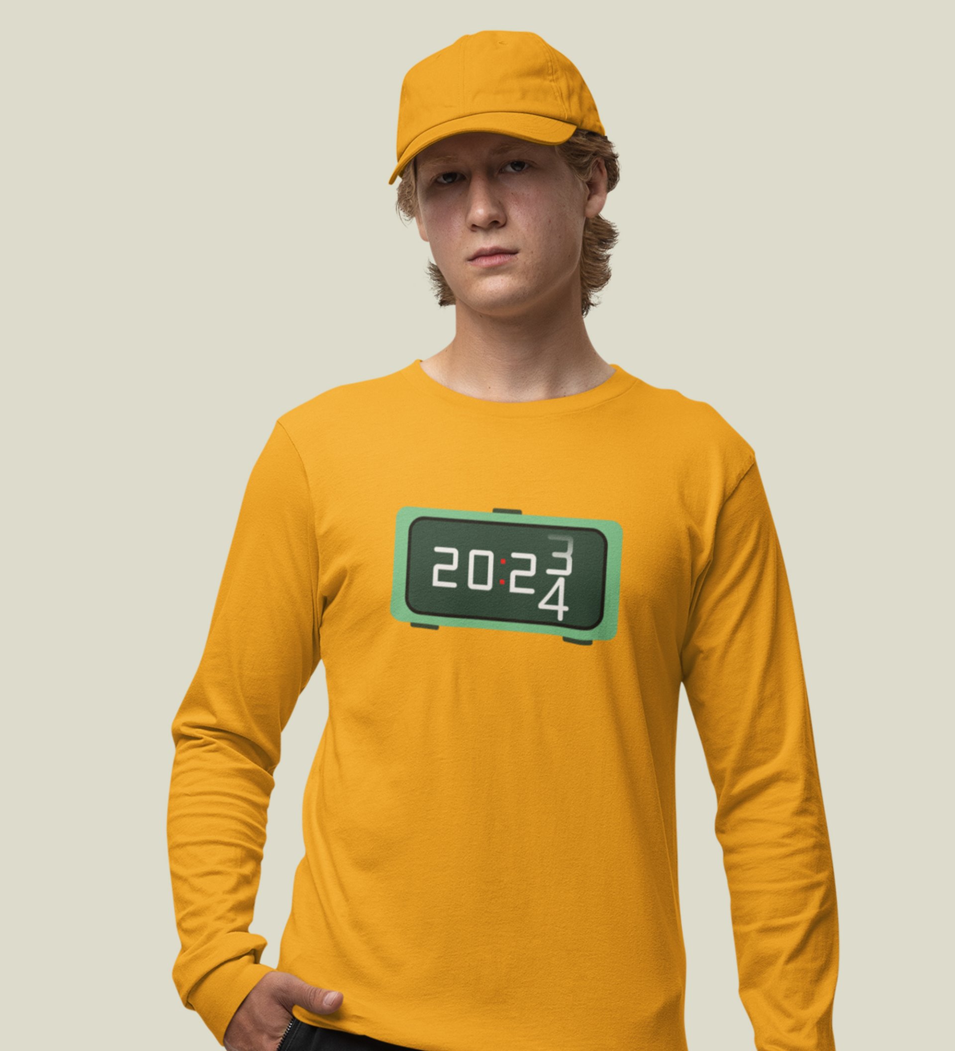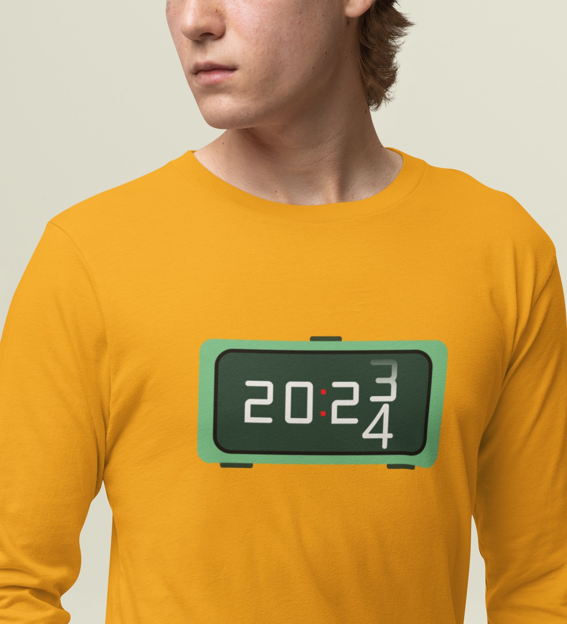Year Changing Clock: Beautifully DesignedFull Sleeve T-shirt Yellow Best Gift For Secret Santa
