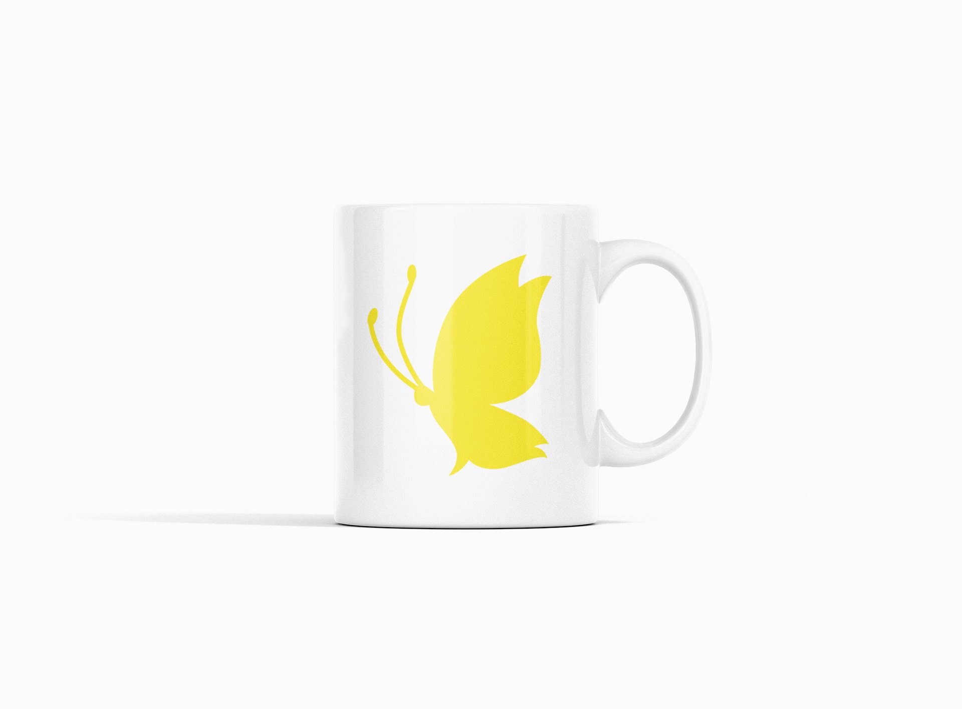 Yellow Butterfly - animation themed printed ceramic white coffee and tea mugs/ cups for animation lovers