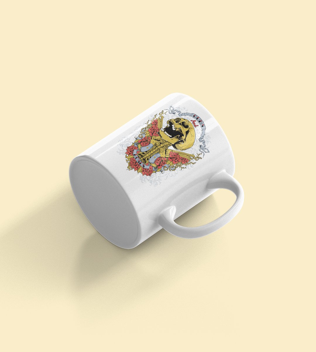 Floral skeleton (yellow) - animation themed printed ceramic white coffee and tea mugs/ cups for animation lovers