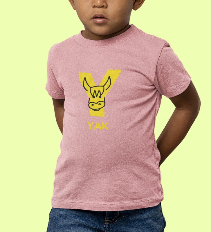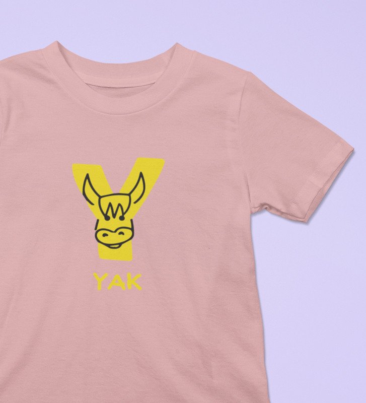 Yellow Yak, Printed Cotton Tshirt (Baby pink) for Boys