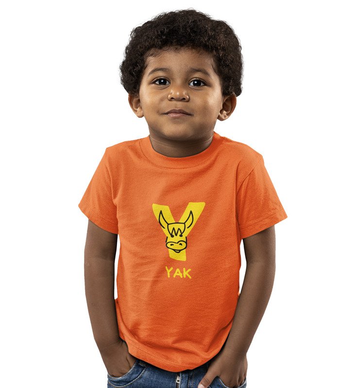 Yellow Yak, Printed Cotton Tshirt (Orange) for Boys