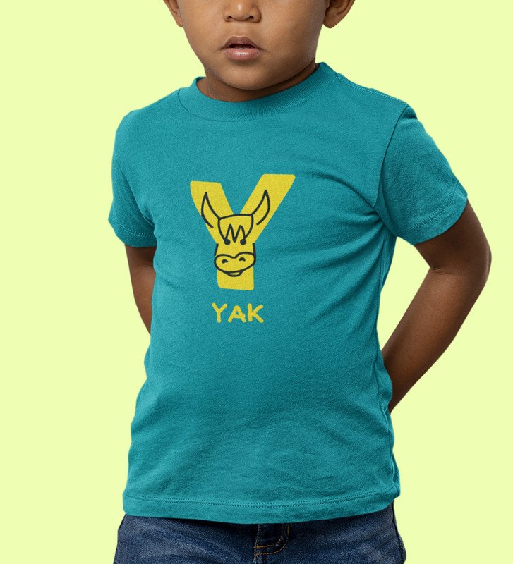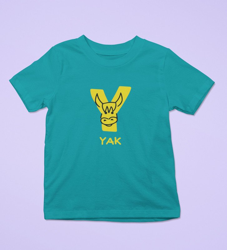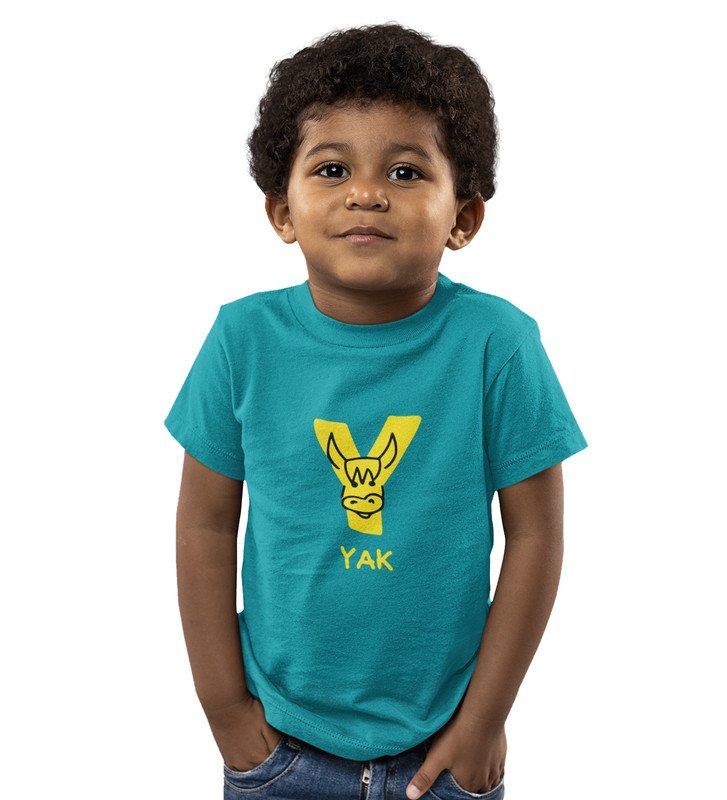 Yellow Yak, Printed Cotton Tshirt (Teal) for Boys